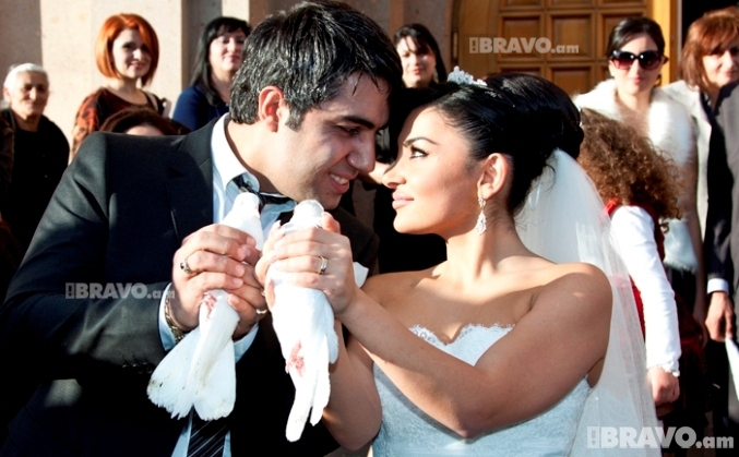 Զույգի պսակադրությունը տեղի է ունեցել ժամեր առաջ` Երեւանի Սուրբ Գրիգոր Լուսավորիչ եկեղեցում: Աստծո օրհնությունը ստանալուց հետո զույգն այժմ մոտ 400 հյուրի հետ “Լաթար” ռեստորանային համալիրում վայելում է խնջույքը: