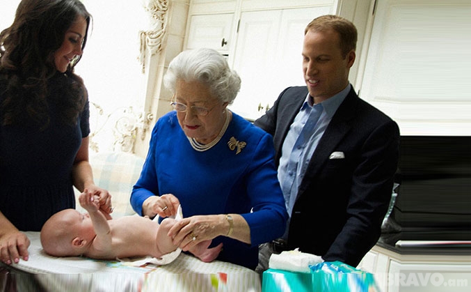 Այս անգամ Էլիսոնը երեւակայել է, թե ինչպիսին կարող է լինել Ուիլյամի արքայական ընտանիքն առաջնեկի ծննդից հետո:): Բեմադրված լուսանկարներում Քեյթին եւ Ուիլյամին նմանակողները խնամում են փոքրիկին: Նրանց օգնում է նաեւ Էլիզաբեթ Երկրորդը: Թագուհին լուսանկարչի դերում էլ է հանդես եկել:):