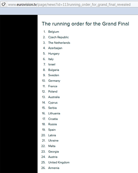 «Եվրատեսիլ 2016»-ի` մայիսի 14-ին կայանալիք եզրափակիչ փուլում Հայաստանի ներկայացուցիչ Իվետա Մուկուչյանն իր ելույթով կեզրափակի մրցութային հատվածը: Մեր մասնակիցը ելույթ կունենա վերջինը` 26-րդ համարի ներքո: Այս մասին նշված է մրցույթի պաշտոնական կայքում: