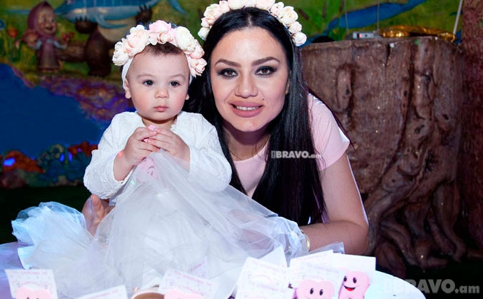 Փոքրիկ Էլինան եւ մայրիկը հյուրերին ներկայացել են գրեթե միանման հագուստով.«Շատ էինք սպասում առաջին տարեդարձին: Անհավատալի է, բայց արդեն մեկ տարի անցավ: Մանկական սրճարանում մթնոլորտը շատ տրամադրող էր` մուլտհերոսներ, խաղահրապարակ»: