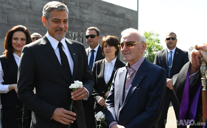 Աշխարհահռչակ արտիստներ Շառլ Ազնավուրը եւ Ջորջ Քլունին մեխակներ են դրել Ծիծեռնակաբերդի հուշահամալիրի հավերժական կրակի մոտ` հարգանքի տուրք մատուցելով Մեծ եղեռնի զոհերի հիշատակին: