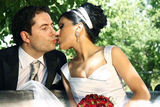 Դերասանուհի Զառայի ու Դավիթի համբույրն ամենայուրահատուկներից է: Լուսանկարի այսպիսի տպավորություն թողնելու պատճառը, հավանաբար, նաեւ հարսի զգեստն է ;): Զույգն ամուսնացել է 2010 թվականի սեպտեմբերի 27-ին Վահագնի թաղամասի “Գոլֆ” ակումբում: Զառան BRAVO.am-ի հետ զրույցում նշել էր, որ ամուսնությունից մոտ 1 ամիս առաջ ԶԱԳՍ-ում ինքն ու Դավիթը ամուսին ու կին են հայտարարվել եւ ամուսնական համատեղ կյանքով են սկսել ապրել մինչ հարսանիքը: Նրանք եւս արդեն ծնողներ են: Հարսանեկան մեկ այլ համբույրի հեղինակներն ամուսնացել են 10.10.10-ին: Լրագրող, մանեքենուհի Անի Քոչարը “Աշխարհն առանց արգելքների” հ/կ նախագահ Արման Մուշեղյանին խոստացել է հնազանդ լինել, Արմանն էլ` տեր: