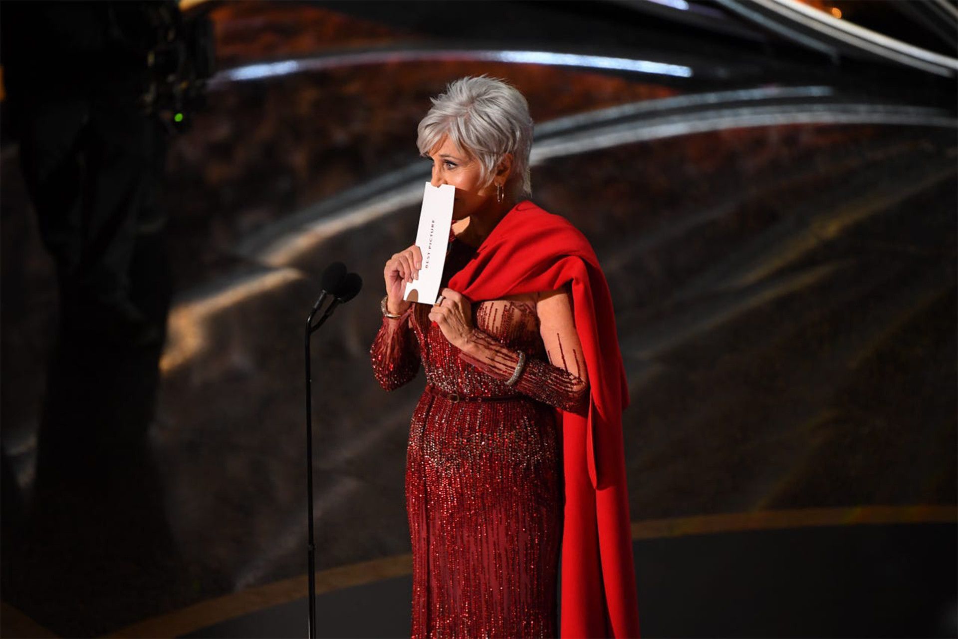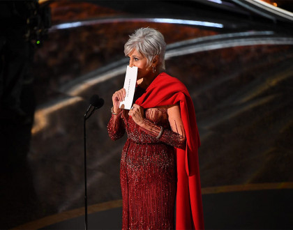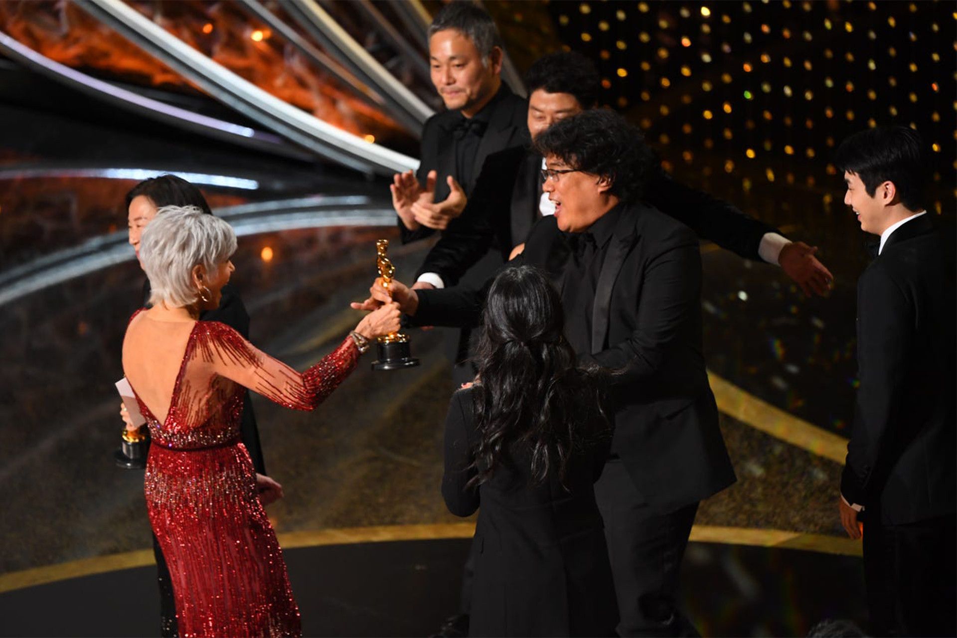 Ջեյն Ֆոնդան մրցանակ է հանձնում Պոն Ջուն Հոնին