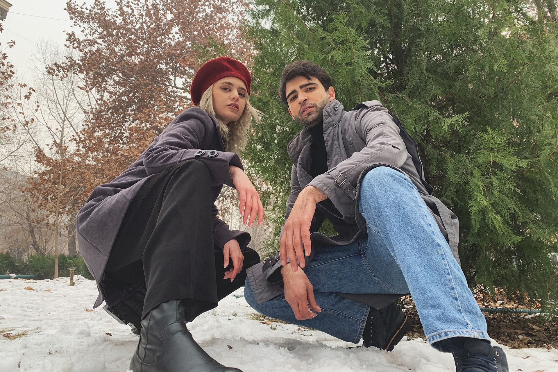 Վիկտորյա Սահակյանը եւ Վարուժան Մանուկյանը՝ «Ծաղիկներ ձյան տակ» սերիալի նկարահանումներին