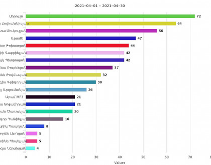 Հայտնիների օնլայն մեդիա վարկանիշը ապրիլին