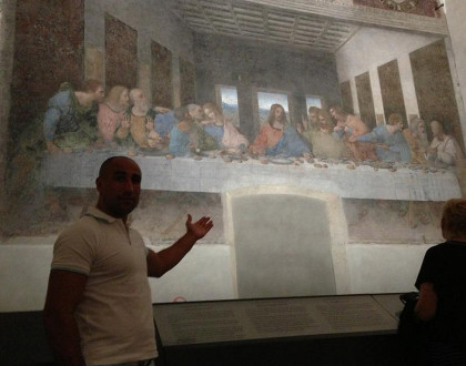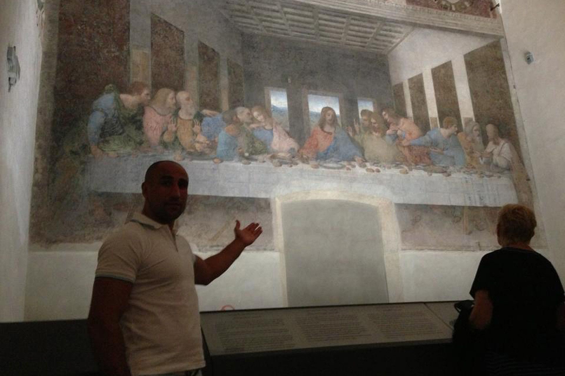 Արթուր Աբրահամը՝ «Խորհրդավոր ընթրիք» որմնանկարի մոտ
