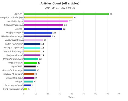 Հայտնիների օնլայն մեդիա վարկանիշը սեպտեմբերին