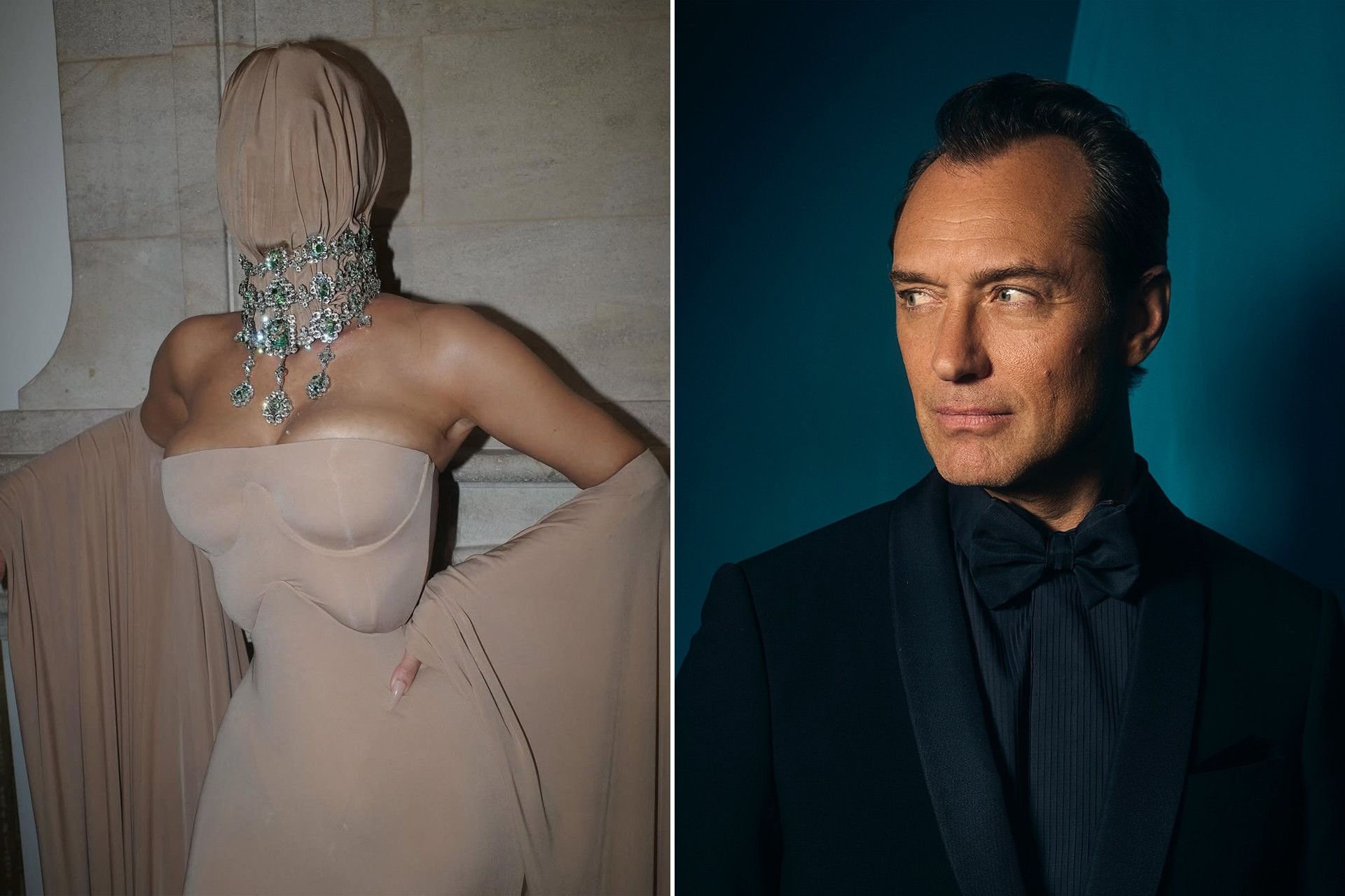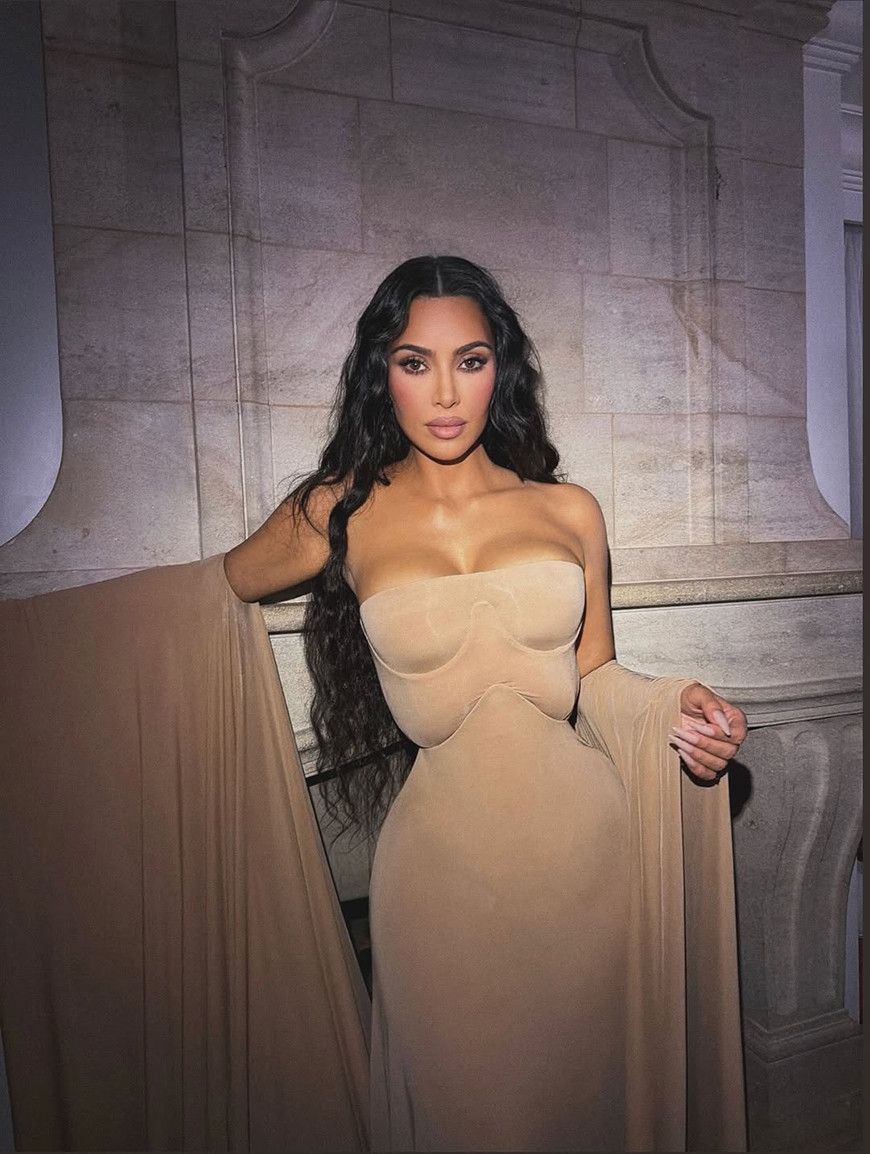 Լոս Անջելեսում տեղի ունեցած միջոցառմանը Քիմ Քարդաշյանը լուսանկարիչների առջեւ կանգնել է մարմնագույն կտորով ամբողջությամբ ծածկված դեմքով: Դիմակը պարանոցի հատվածում ամրացված է եղել թանկարժեք քարերով հսկայական մանյակով: Իսկ Maison Margiela-ի մարմնագույն զգեստն ու կորսետն ամբողջացրել են կերպարը: