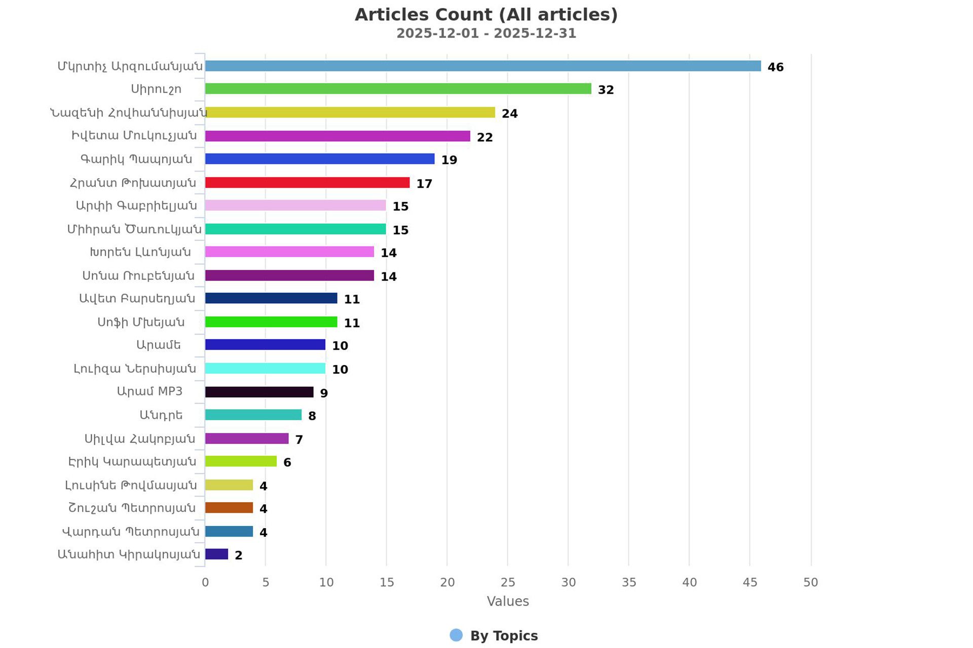 Մոտ 150 լրատվական կայքերի դեկտեմբեր ամսվա դիտարկման արդյունքներով ամենից շատ հիշատակված հայտնիների եռյակն է՝