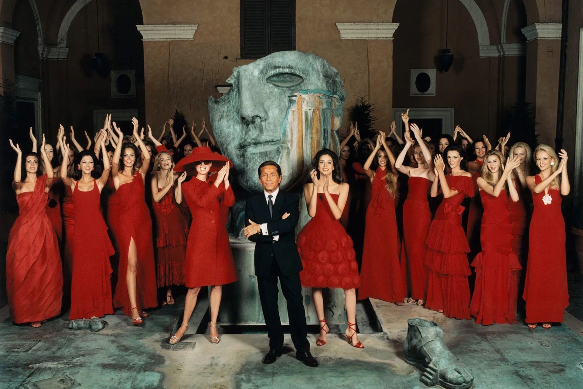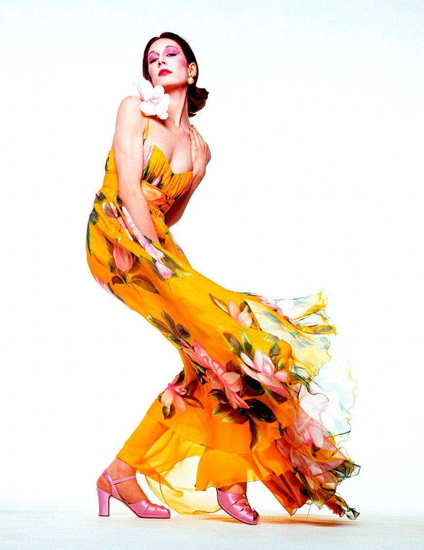 Դերասանուհի, ռեժիսոր Անջելիկա Հյուսթոնը 1970-ականներին աշխատել է որպես մոդել ու դարձել Valentino Haute Couture-ի գովազդային արշավների դեմքը: Դեղին ծաղկավոր զգեստով նրա լուսանկարը, որն արել է Ջան Պաոլո Բարբիերին, Վալենտինոյի սիրելիներից էր: