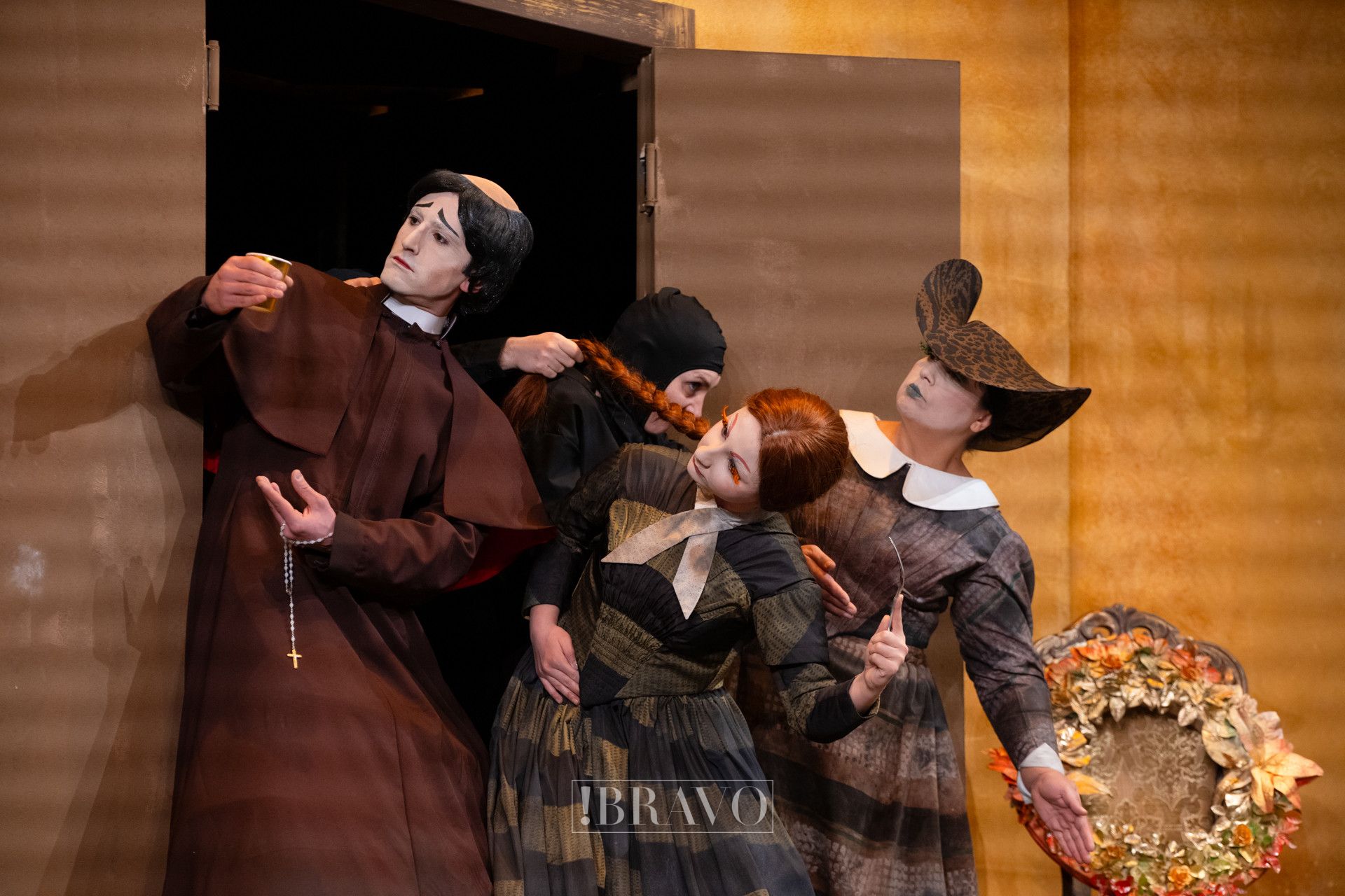 Մոտ կես տարի Համազգայինի դերասաններին իրենց թատրոնում չտեսնելուց հետո մի պահ ցանկանում ես աչքերդ տրորել ու համոզվել, որ ամեն ինչ ճիշտ ես ընկալում, ու կերպարները աչքիդ երկուական չեն երեւում: Պարզապես Գրիգորյանն է անսովոր հնարք գտել՝ ներկայացումը բեմադրել է խամաճիկների թատրոնի սկզբունքով: Նա դերասաններին տիկնիկներ է դարձրել, որոնց շարժվելու կամ էլ խոսելու համար տիկնիկավարների օգնությունն է պետք։ Բացառություն է Վարշամ Գեւորգյանի կատարմամբ Սուրբ Անտոնիսոսը, քանի որ սրբերին օգնություն պետք չէ. իրենք են երկրի վրա հրաշքներ կատարում: Ներկայացման շնորհիվ նորովի ենք բացահայտում ու ճանաչում Համազգայինի դերասաններին ու նրանց հմտությունները: