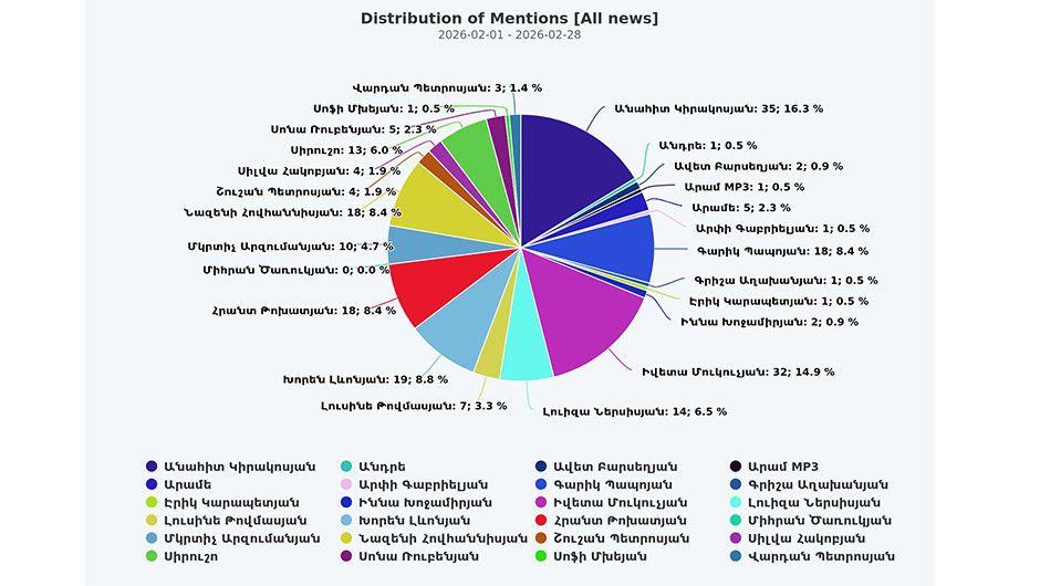 Մոտ 150 լրատվական կայքերի փետրվար ամսվա դիտարկման արդյունքներով ամենից շատ հիշատակված հայտնիների եռյակն է՝