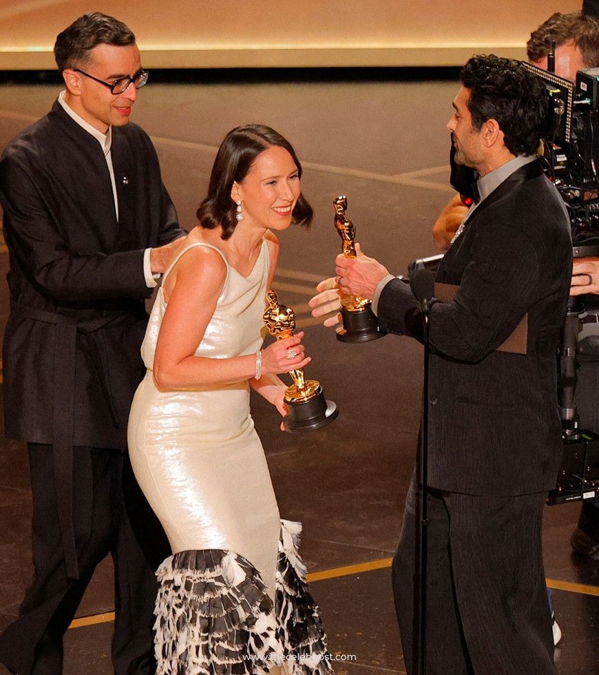 «Այնքան ուրախ ենք մրցանակը կիսել մեր սիրելի «Երգիչներ»-ի հետ: Շատ շնորհակալ ենք նրանց, ովքեր աջակցել են մեր ֆիլմին ու մասնակցել ստեղծմանը՝ թիմին ու պրոդյուսերներ Ջուլիանա Մուրին եւ Իզաբել Յուպերին, մեր ընտանիքներին ու ընկերներին, ինչպես նաեւ մեր փոքրիկ դստերը՝ Սոֆիա Սինխին: Եվ շնորհակալություն Ակադեմիային՝ այս տարօրինակ ֆիլմին աջակցելու համար, որը հիմնականում կանայք են ստեղծել»,- իր ելույթում ասել է Մուստեատան: